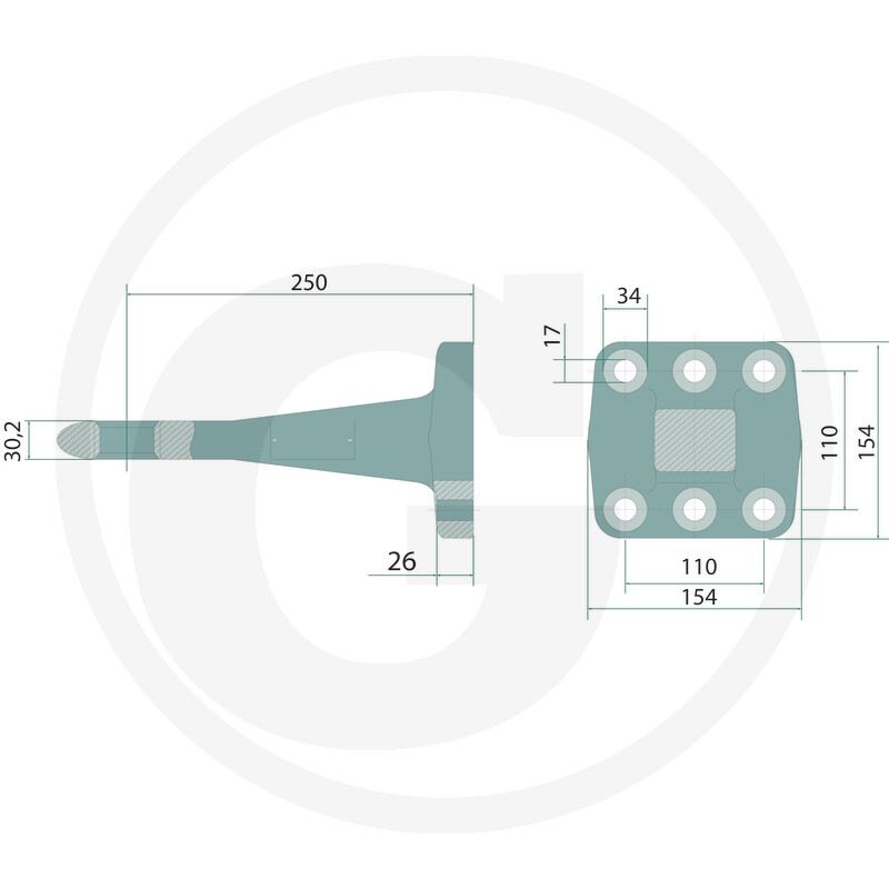 Sakabes cilpa 40 mm, flancis 110 x 100 mm, 14 t