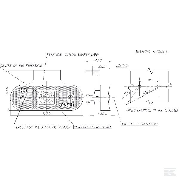 LED Gabarītlukturis, sānu, 230z, W-47, 12-24 V