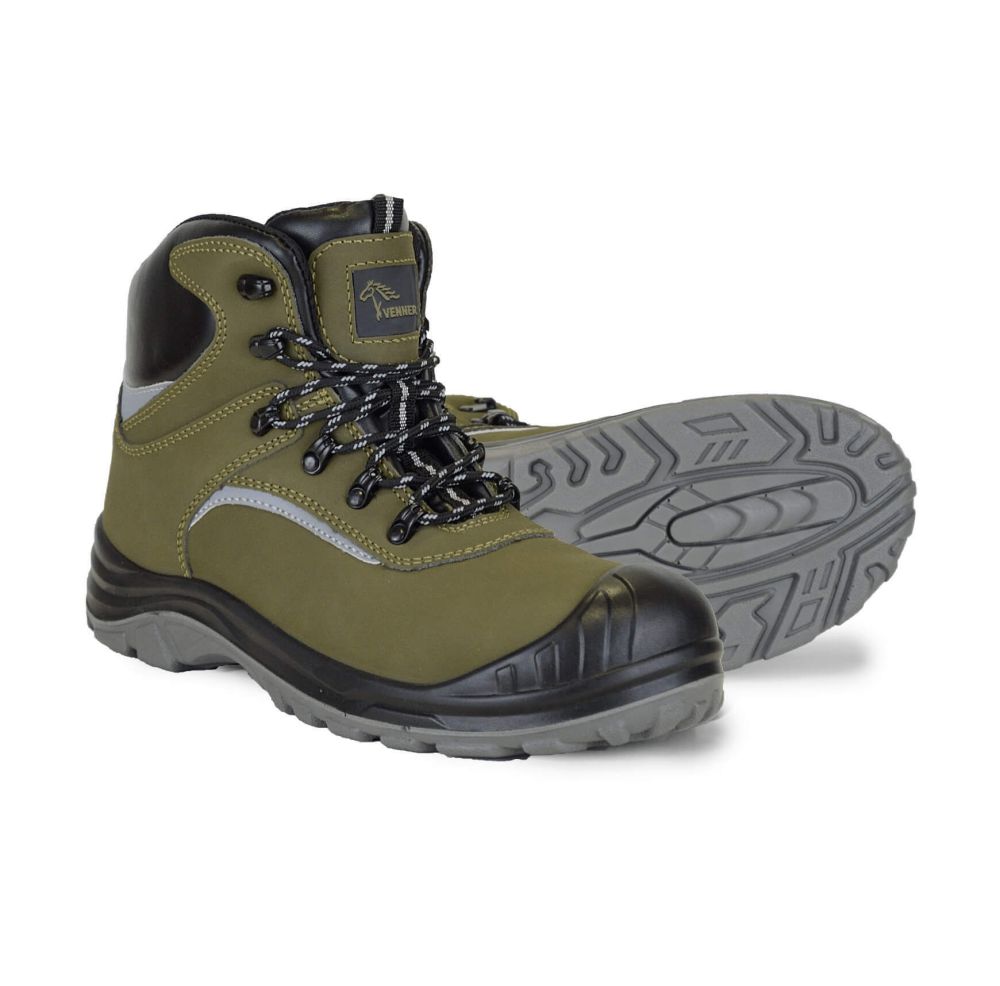 Paaugstināti darba apavi no nubuka ādas S3, haki krāsā