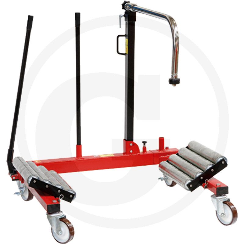 Šie profesionālie riepu montāžas un transportēšanas rati ir ideāli piemēroti ātrai un ergonomiskai riteņu maiņai smagajai tehnikai, kravas automašīnām un lauksaimniecības transportam. Aprīkoti ar četriem izturīgiem grozāmiem ritenīšiem, tie nodrošina precīzu riteņa pozicionēšanu montāžas laikā un vieglu manevrēšanu darbnīcā. Drošības stienis garantē drošu pārvietošanu arī ar lieliem riteņiem.