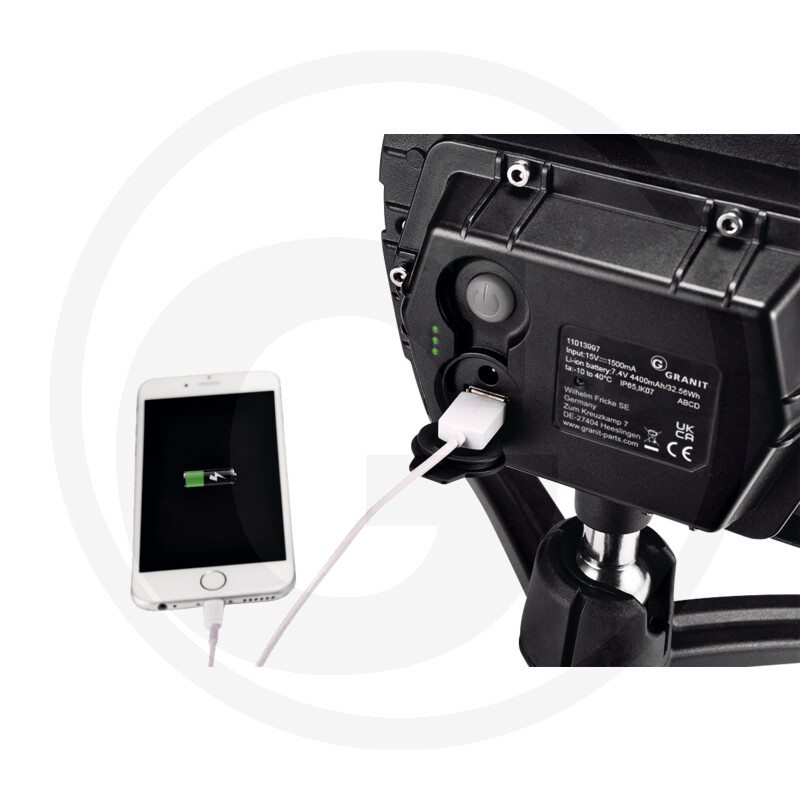 • 7,4 V/4400 mAh Li-ion akumulators ar akumulatora līmeņa un uzlādes indikatoru