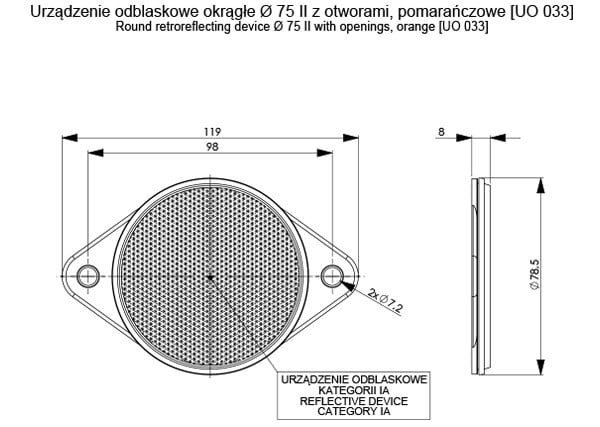 Atstarotājs Ø75mm, oranžs, pieskrūvējams
