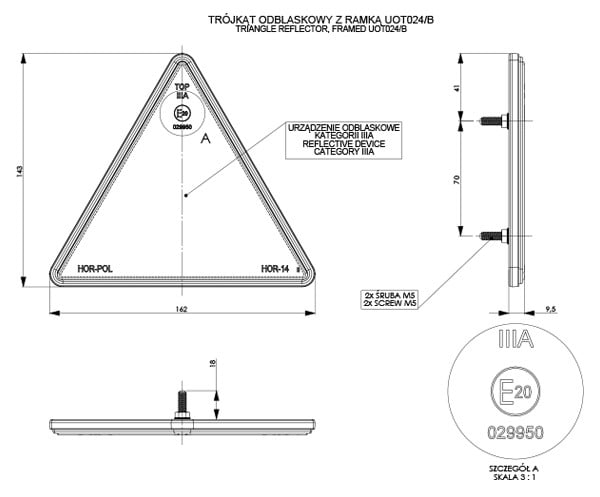 Atstarotājs trīsstūrveida, sarkans, rāmī, pieskrūvējams