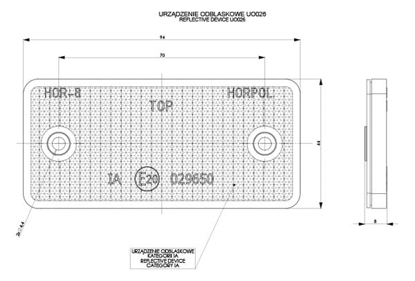 Atstarotājs 44x94mm, balts, pieskrūvējams