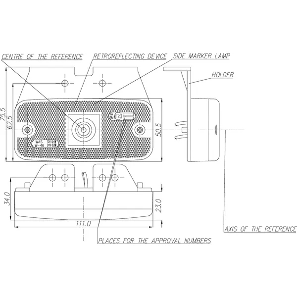 KRAMP LED sānu gabarītlukturis 111x50, vads