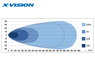 - Jaunajam izliektajam lukturim no X-Vision ir īpaši plats un īpaši gluds staru kūlis, kas sasniedz arī ļoti lielus attālumus.