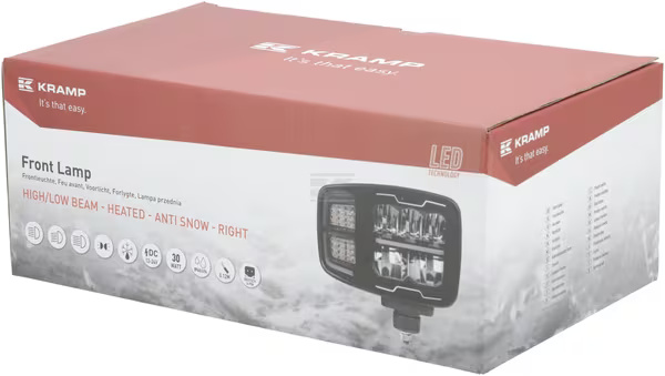 Augstas kvalitātes universāls LED priekšējais lukturis profesionālai lietošanai traktoros, būvtehnikā un kravas transportā. Aprīkots ar jaunākās paaudzes LED tehnoloģiju, apsildāmu stikla lēcu un daudzfunkcionālu apgaismojumu, kas ietver tuvās un tālās gaismas, dienasgaismas (DRL), pozīcijas un pagrieziena signālus – arī aizmugures atkārtotāju.
