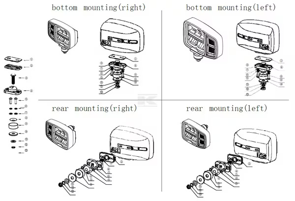 Montāžas iespējas: Divu skrūvju (dual-stud) stiprinājums