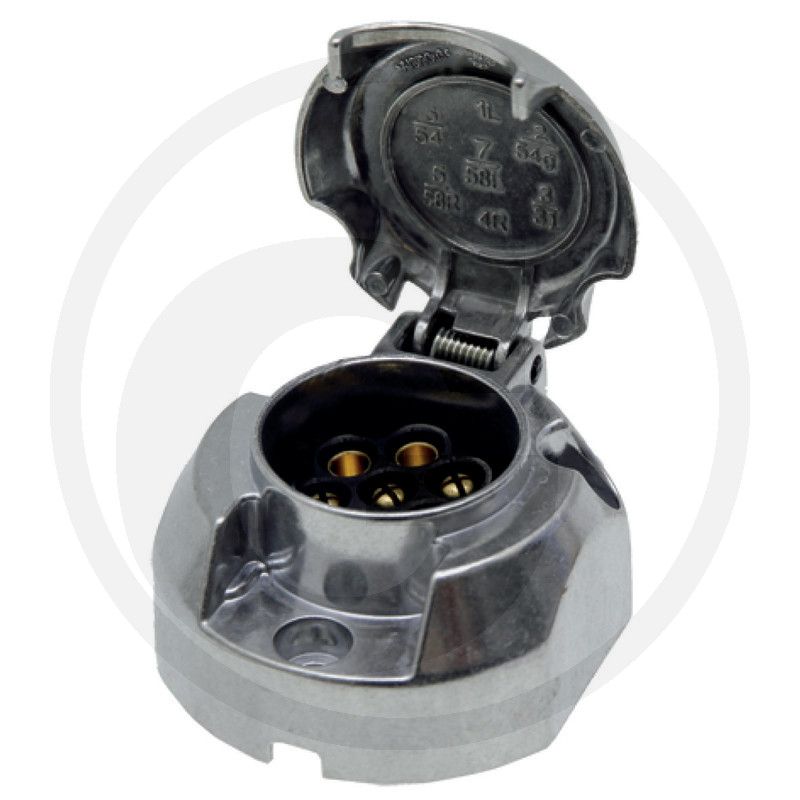 DIN/ISO 1724alloy with screw connections, voltage of 6-12 Vup to 16 A (1,5 mm²) at 12 Vup to 25 A (2,5 mm²) at 24 V1 shut-off contact, rear fog light on vehicle is disconnected when the plug is connected,removable insert,flattened shape for easier assembly and disassembly,to fit as plug 50743895