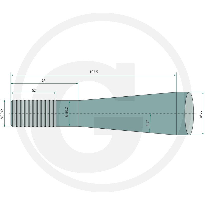 Pīķis, M30 x 2 mm, kvadrātveida, konuss K173-2