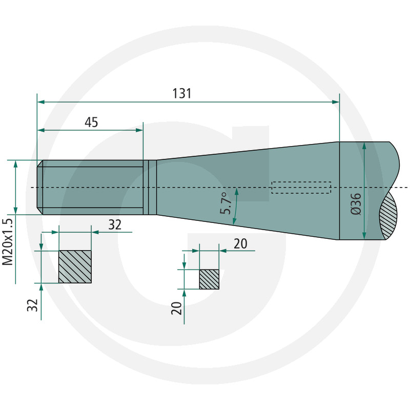 Pīķis, M20 x 1,5 mm, kvadrātveida, konuss K004