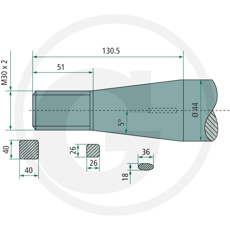 Pīķis, M30 x 2 mm, kvadrātveida, konuss K012
