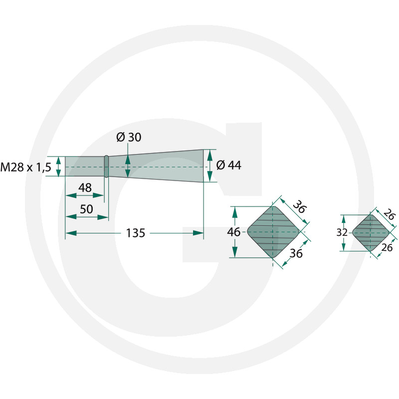 BLUELINE pīķis, M28 x 1,5 mm, kvadrātveida
