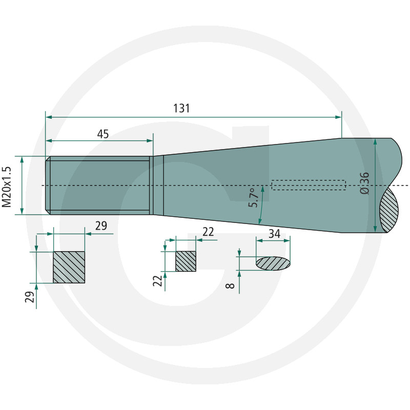Pīķis, M20 x 1,5 mm, kvadrātveida, konuss K004