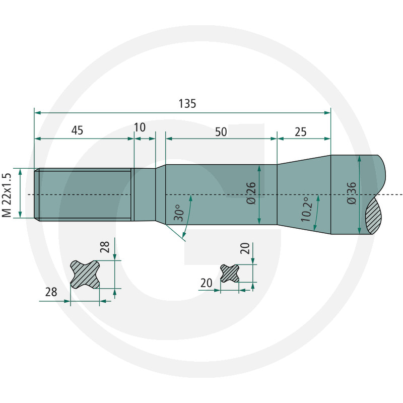 Pīķis, M20 x 1,5 mm, zvaigzne, konuss K113