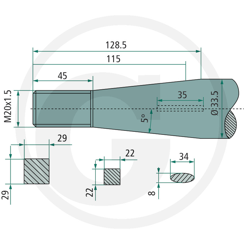 Pīķis, M20 x 1,5 mm, zvaigzne, konuss K021