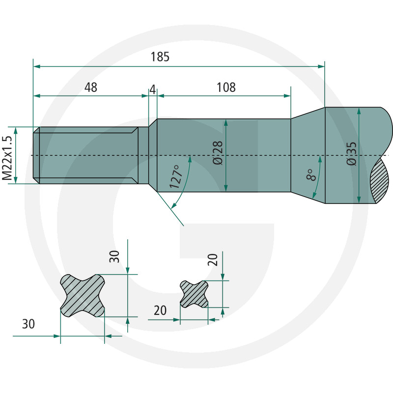 Pīķis, M22 x 1,5 mm, zvaigzne, konuss K134