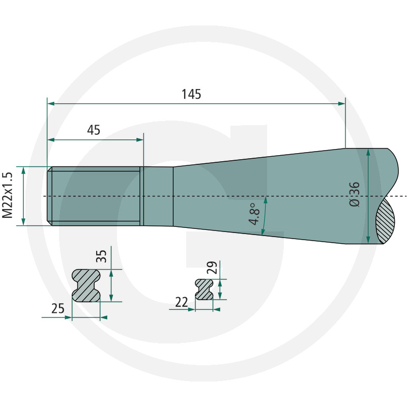Pīķis, M22 x 1,5 mm, kvadrātveida, konuss K003