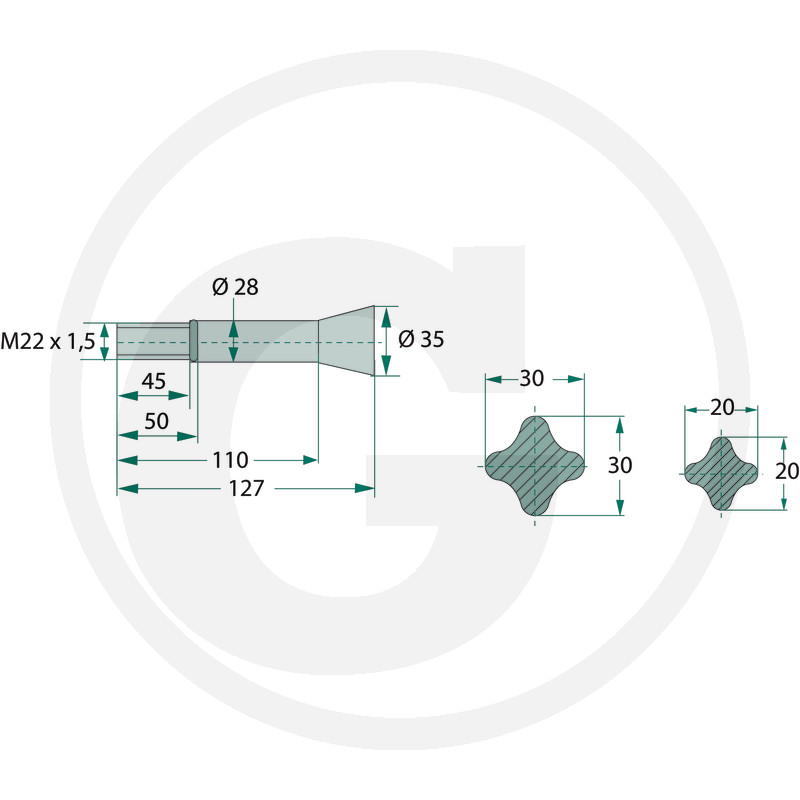 BLUELINE Pīķis, M22 x 1,5 mm, izliekts