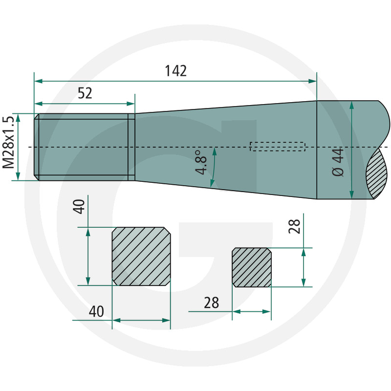 Pīķis, M28 x 1,5 mm, kvadrātveida, konuss K013