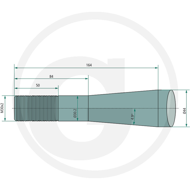 Pīķis, M30 x 2 mm, kvadrātveida, konuss K174