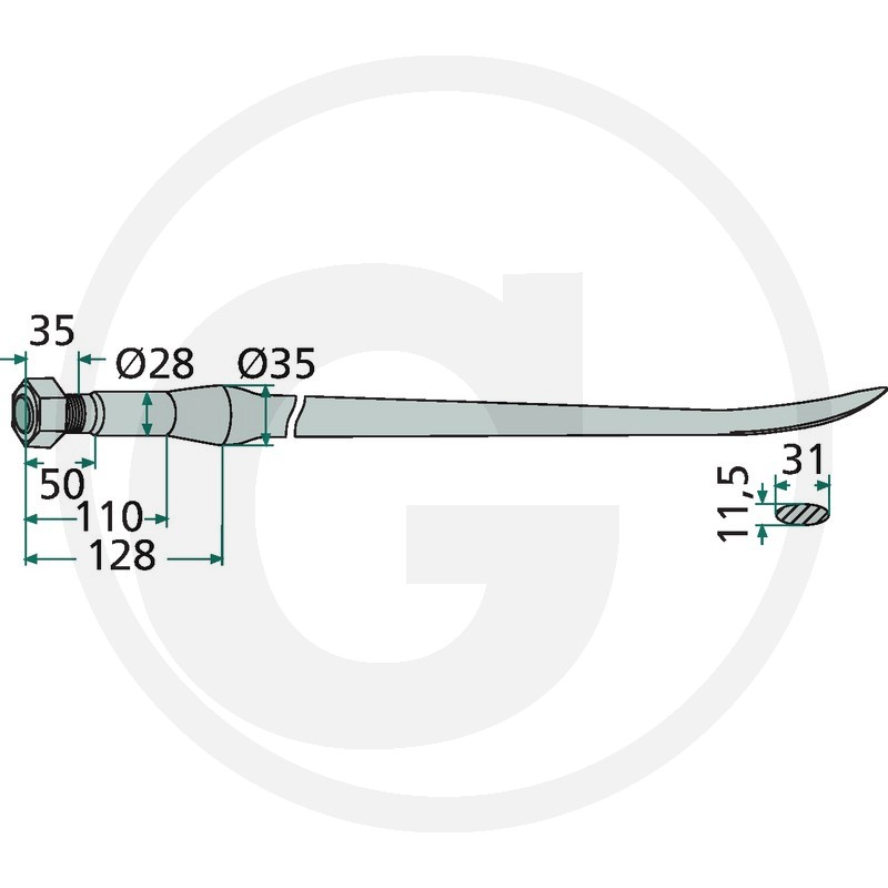 Izliekts pīķis M22 x 1,5 mm