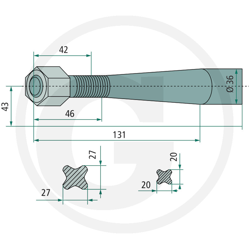 Izliekts pīķis M22 x 1,5 mm, zvaigzne