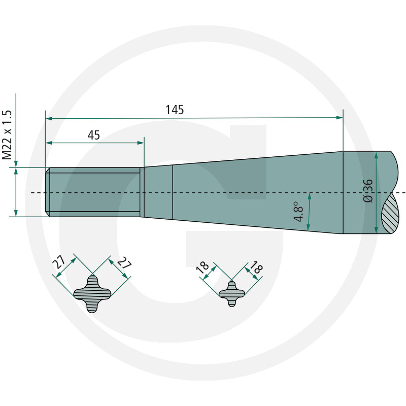 Pīķis, M22 x 1,5 mm, zvaigzne, konuss K003