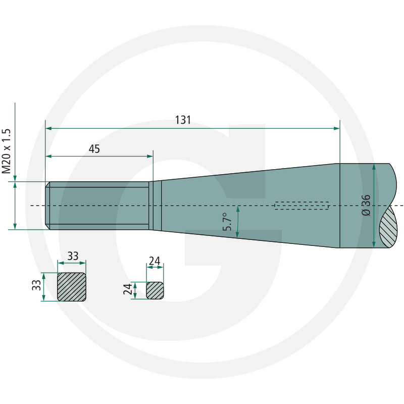 Pīķis, M20 x 1,5 mm, kvadrātveida, konuss K004