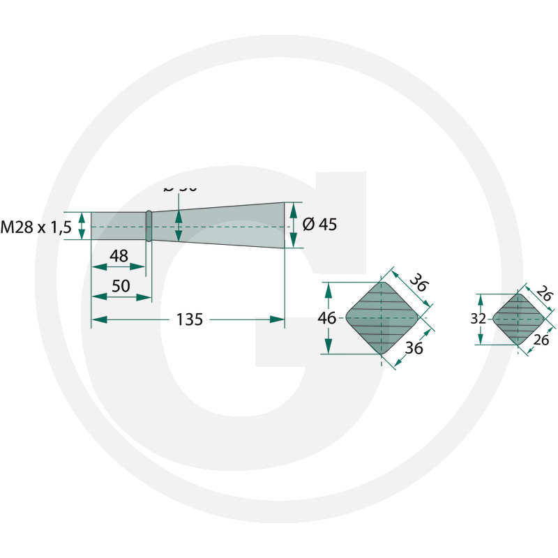 Pīķis, M28 x 1,5 mm, kvadrātveida
