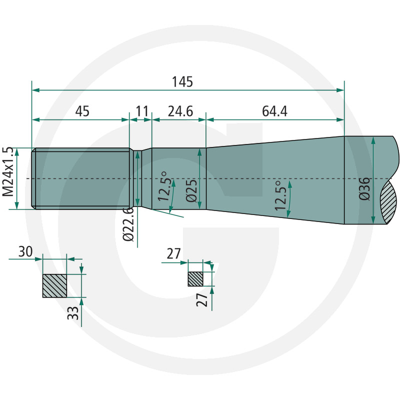 Izliekts pīķis M24 x 1,5 mm, kvadrātveida, konuss K111