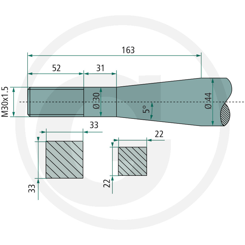 Pīķis, M30 x 2 mm, kvadrātveida, konuss K143