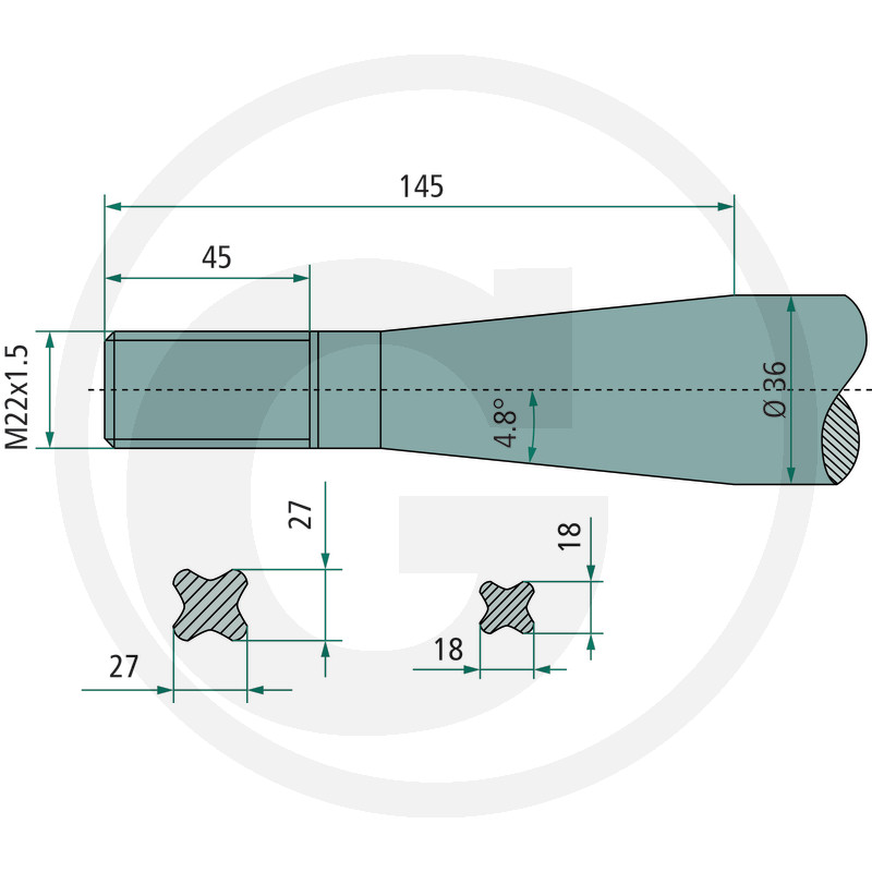Izliekts pīķis, M22 x 1,5 mm, zvaigzne, konuss K003