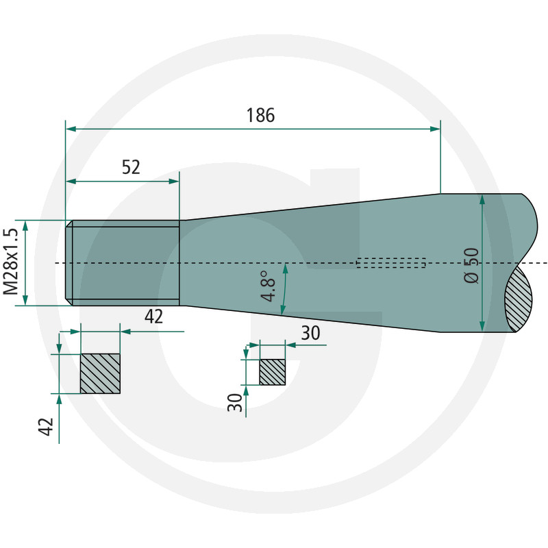 Pīķis, M28 x 1,5 mm, kvadrātsveida, konuss K014