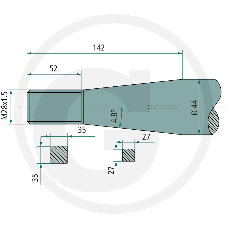 Pīķis, M28 x 1,5 mm, kvadrātsveida, konuss K013