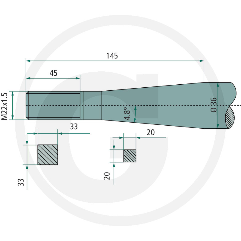 Izliekts pīķis, M22 x 1,5 mm, kvadrātveida, konuss K003