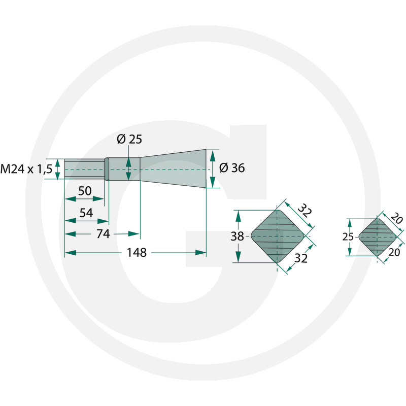 BLUELINE pīķis, M24 x 1,5 mm, kvadrātveida