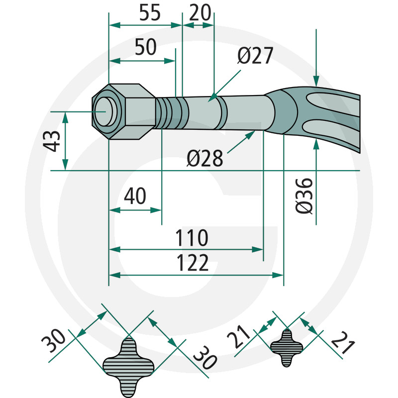 Izliekts pīķis, M22 x 1,5 mm, zvaigzne