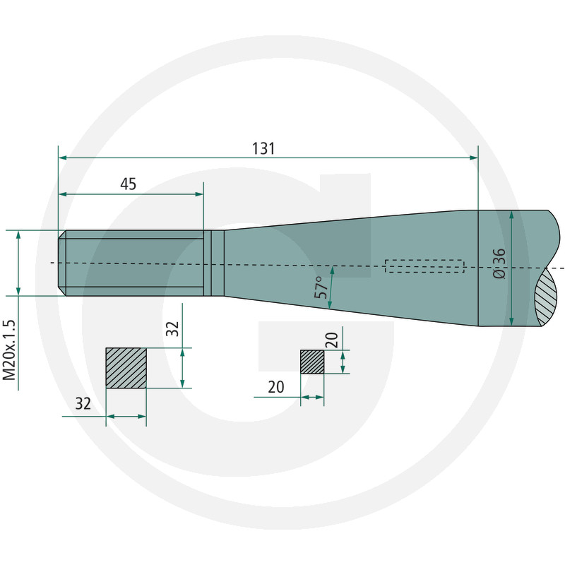 Pīķis, M20 x 1,5 mm, kvadrātsveida, konuss K001