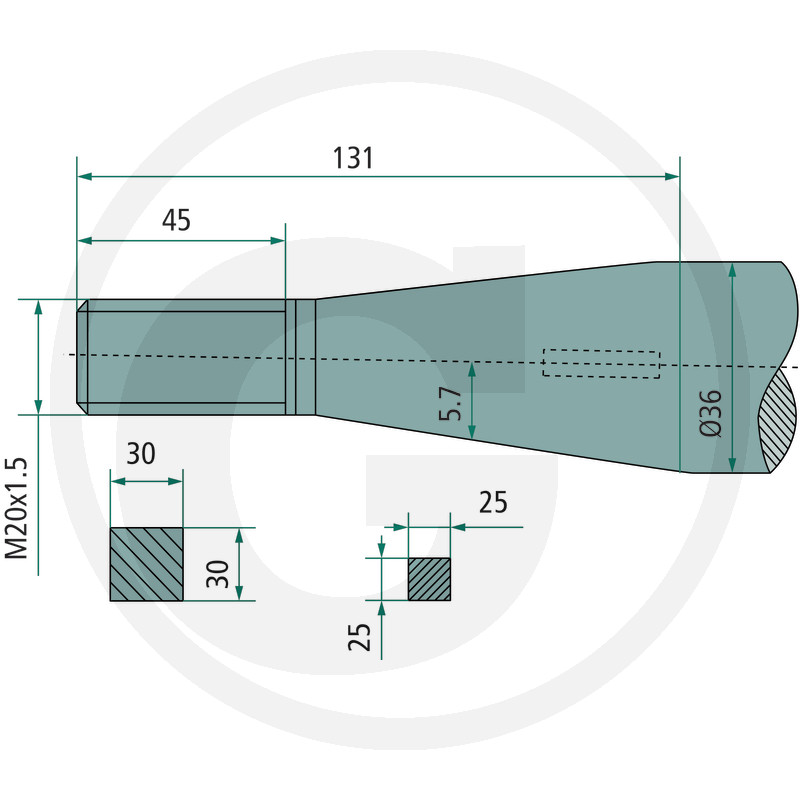 Ieliekts pīķis, M20 x 1,5 mm, kvadrātveida, konuss K004