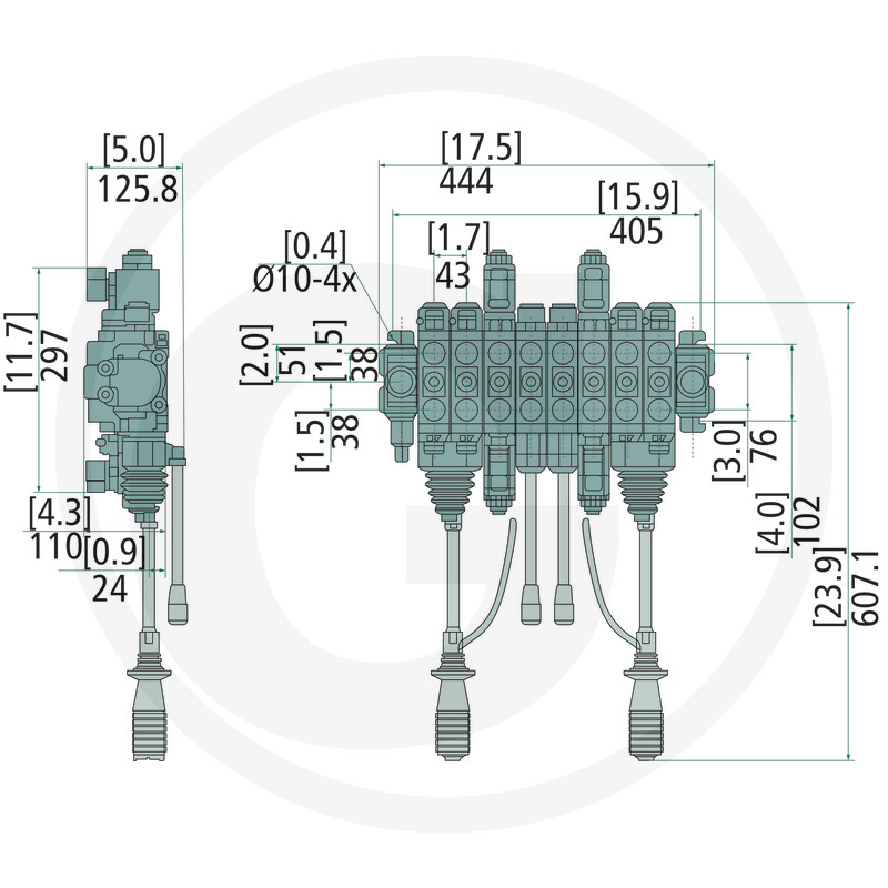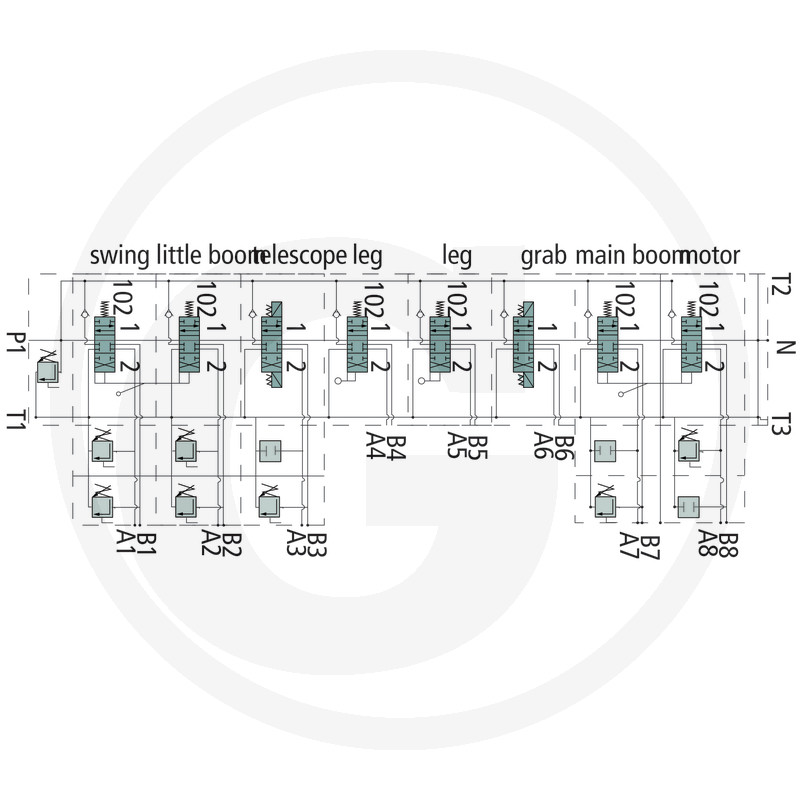 GRANIT 8ZC70/N2 ir profesionāls sekcionālais hidrauliskais sadales vārsts, paredzēts mežsaimniecības tehnikai un krāniem. Vārsts ir aprīkots ar 8 dubultdarbības sekcijām, no kurām 6 ir ar manuālo vadību un 2 – ar elektrisko vadību (12 V ieslēgts/izslēgts). Speciālā manuālā vadība nodrošina precīzu un drošu krāna kustību kontroli arī smagos darba apstākļos.