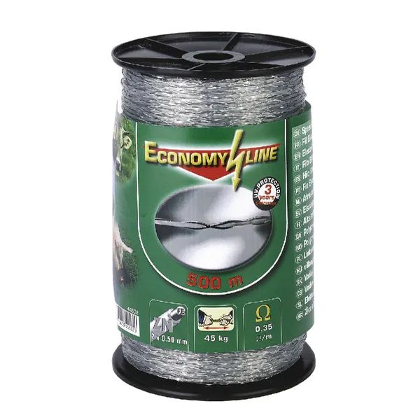 1 neilona serde Ø 1,4 mm ar 2 Ø 0,50 mm cinkota tērauda stieplēm. Ļoti laba strāvas vadītspēja.