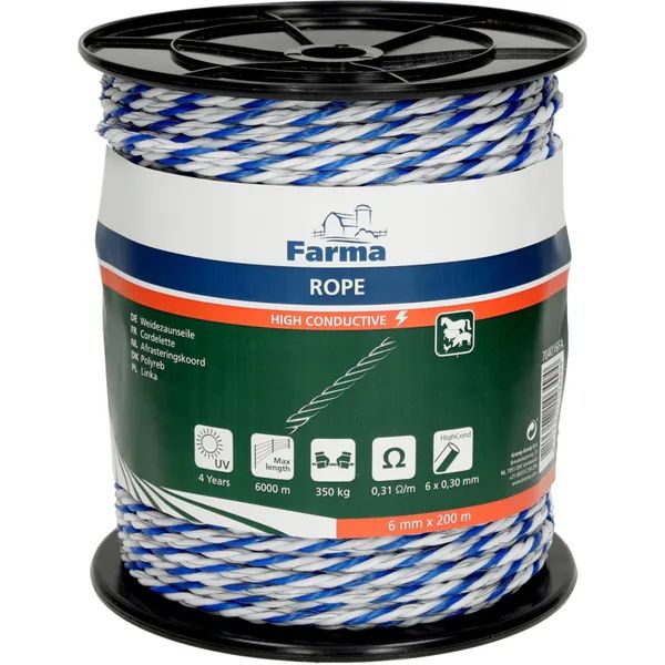 Šī elektriskā gana virve garantē lielisku elektrības vadāmību un ilgmūžību vidēji gariem un gariem žogiem. Virve ir aprīkota ar jauno High Cond vadošo materiālu, kas nodrošīna ar 5 reizes augstāku strāvas vadītspēju. Citiem vārdiem sakot, jūs varat izmantot 5 reizes garākus žogus vai “transportēt” 5 reizes lielāku jaudu virves vietās, kas saskaras ar dzīvniekiem. Tā ir 5 reizes lielāka drošība!