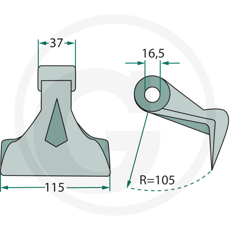 Mulčera āmurīts Ø 16.5, 115 mm, R=105