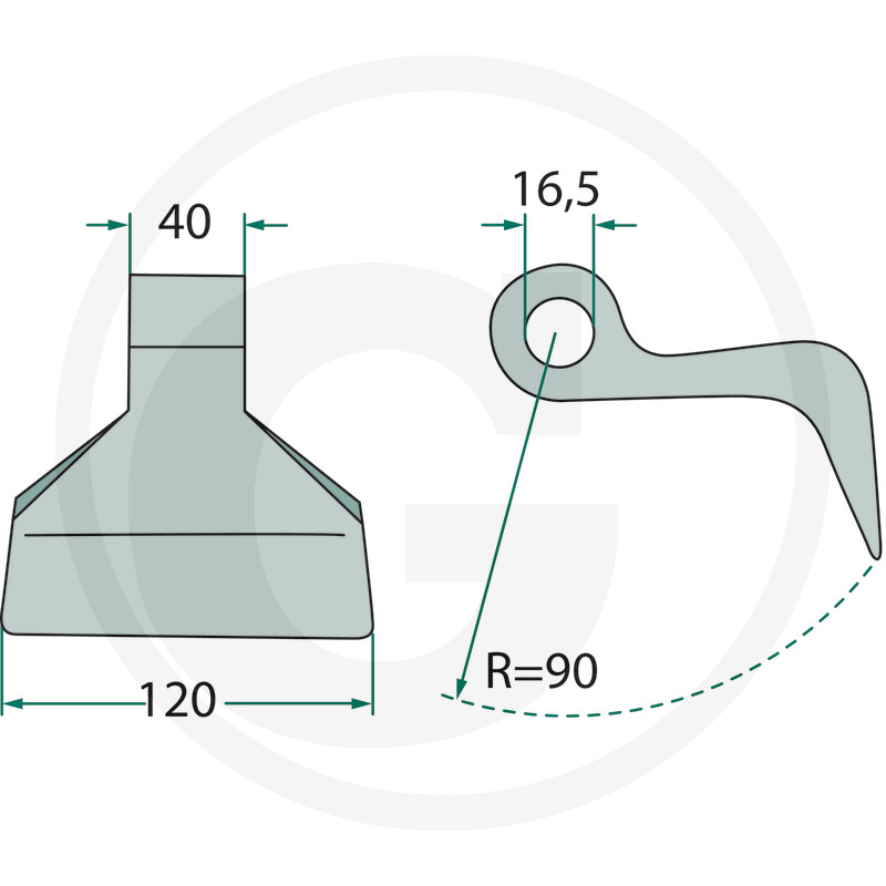 Mulčera āmurīts Ø 16.5, 120 mm, R=90