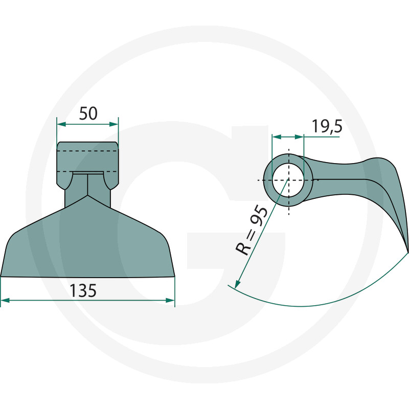 Mulčera āmurīts Ø 19.5, 135 mm, R=95