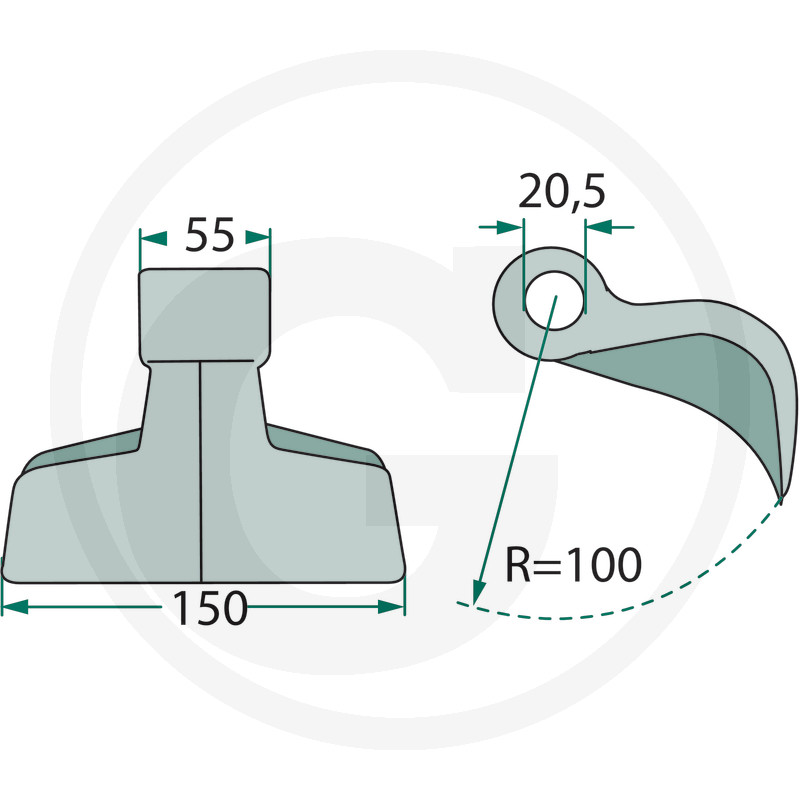 Mulčera āmurīts Ø 20.5, 150 mm, R=100