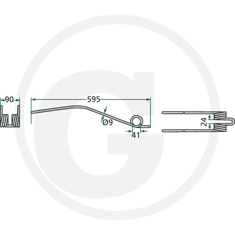 Rotējošā grābekļa zars,595x90 Ø9 mm