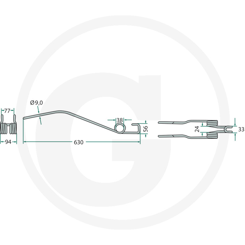 Rotējošā grābekļa zars, 630x94 Ø9 mm