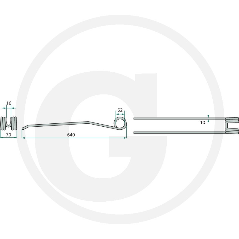 Rotējošā grābekļa zars, 640x70 Ø10 mm